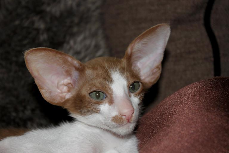 Keywords: cat kitten cat baby curious oriental shorthair fur charming animal carnivores cute fluffy hair baby mammal paw pet playful portrait thoroughbred eye white brown