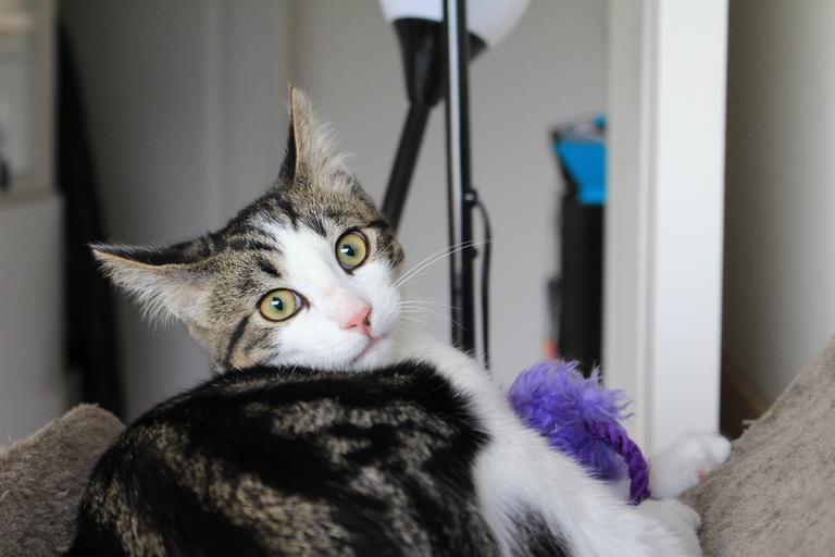 Keywords: cat kitten pet tiger white feline cute kitten surprised cat