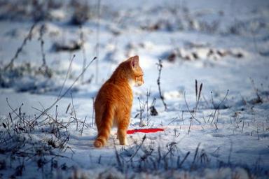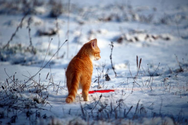 Keywords: cat kitten snow red cat young cat red mackerel tabby winter frost