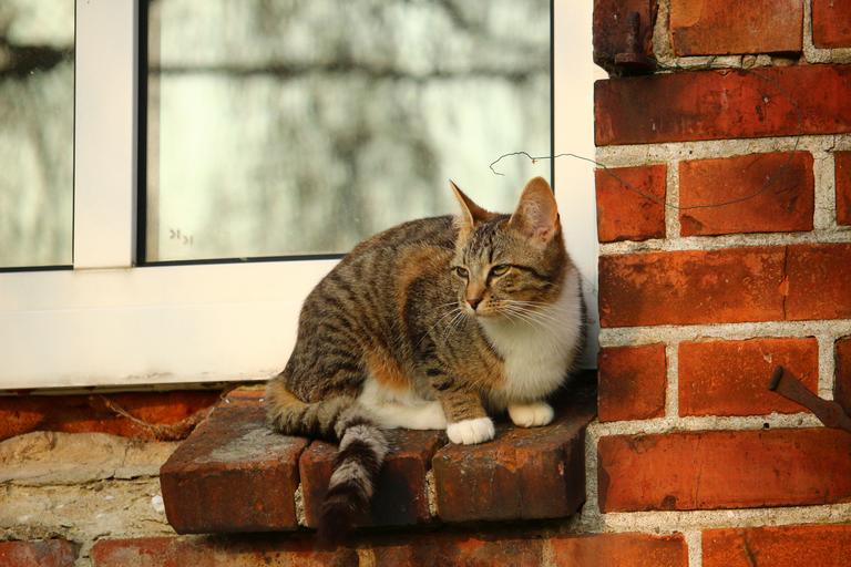 Keywords: cat mieze kitten mackerel window domestic cat tiger cat