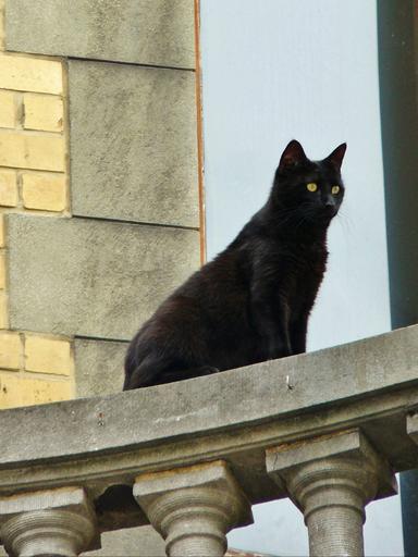 Keywords: cat pet animal black cat domestic cat adidas animal world curious wall masonry railing stone railing home facade black architecture still life