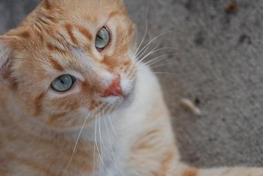Keywords: cat pet orange tabby domestic feline kitten kitty adorable cute furry fluffy curious whiskers looking breed eyes orange tabby face head