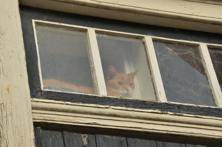 Keywords: cat pet red window glass curious are