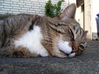 Keywords: cat relax chill out domestic cat nose cat's eyes animals sleep rest mieze adidas pet curious purr beard hair snout mackerel ears
