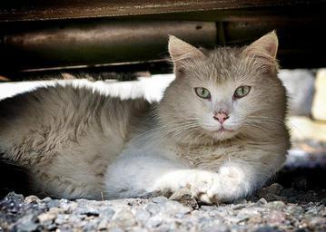 Keywords: cat white feline cute resting outdoors domestic animal pet fur portrait adorable looking sweet