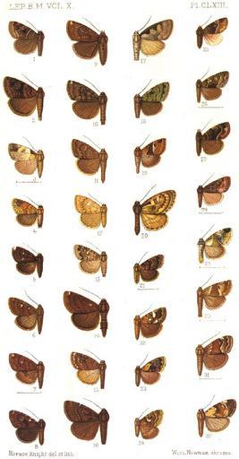 | Keywords: CATALOGUE-BM-PLATE CLXIII.jpg en PLATE CLXIII 1 Ozarba illosis m Vol X p 457 Ceylon 2 O tricuspis m p 457 Br E Africa 3 O amazonia f p 458 Brazil 4 O melagona m p 458 Madagascar 5 Amyna crocosticta m p 463 Christmas I 6 A aroa m p 463 Pulo Laut 7 A leucopera m p 464 Madras 8 A ruptirena m p 465 N Rhodesia 9 A renalis m p 466 Sikhim 10 A glaucopera m p 466 Sikhim 11 A leucostriga m p 467 Punjab 12 A griseola f p 470 Lr Guinea 13 A spilonota m p 470 N Australia 14 A amplificans m p 471 Guatemala 15 A teratophora m p 474 Florida H9284 Agriopodes teratophora H -S 1854 16 A monocampta m p 476 Sikhim 17 Bryocodia avirida m p 477 Alberta 18 B pictula m p 478 Brazil 19 B mediana m p 479 Brazil 20 Micrantha janeira f p 484 Brazil 21 M cyclopis f p 485 Panama 22 Erastroides albiguttata m p 491 Peru 23 E flavibasalis m p 492 Assam 24 E hermosilla m p 493 Brazil 25 E fausta f p 494 Burma 26 E endomela m p 495 Burma 27 E mesomela f p 495 Ceylon 28 E propera f p 497 Arizona H9031 Ozarba propera Grt 1882 29 Lithacodia synochitis m p 498 New York H9049 G R 1868 30 L arefacta m p 502 Japan 31 L ferrugina m p 503 Queensland 32 L baetica m p 506 Burma CATALOGUE OF THE NOCTUIDAE IN THE COLLECTION OF THE BRITISH MUSEUM Sir GEORGE F HAMPSON Bart 1903-1913 PD-old Catalogue of Lepidoptera Phalaenae in the British Museum Vol 10 |