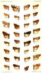 | Keywords: CATALOGUE-BM-PLATE CXXXIII.jpg en PLATE CXXXIII 1 Acosmetia tenuipennis m Vol VIII p 412 Formosa 2 A arida f p 414 Egypt 3 Petilampa anotha m p 416 Br Columbia H9642 Protoperigea anotha Dyar 1904 4 P camina m p 417 Colorado H9655 Platyperigea camina Sm 1894 5 Ethiopica cupricolora m p 419 Mozambique 6 E polyastra m p 419 Nigeria 7 E hesperonota f p 420 Br E Africa 8 E micra m p 420 Natal 9 Hypoperigea leprosticta f p 423 Ceylon 10 H turpis m p 424 Madras 11 H haemorrhanta m p 425 Queensland 12 Dysmilichia calamistrata f p 428 Sikhim 13 D perigeta m p 428 Brazil 14 Proxenus xantholopha m p 431 C Colony 15 P dissimilis m p 431 Philippines 16 P xanthopis f p 432 Basutoland 17 P fragosa m p 433 Arizona H9836 Fotella fragosa Grt 1883 18 P distracta m p 433 Mongolia 19 P tenuis m p 434 Queensland 20 P nitens m p 435 Alberta H9647 P miranda Grt 1873 a nitens Dyar 1904 21 P miranda m p 435 New York H9647 Grt 1873 22 P hennia f p 436 Borneo 23 P tristis f p 437 E Siberia 24 Galyula subapicalis m p 440 Jamaica 25 G castra m p 441 Brazil 26 Micrathetis canifimbria m p 442 Brazil 27 Platysenta temecula m p 447 Arizona H9691 Barnes 1905 28 P discistriga m p 448 Colorado H9692 Sm 1894 29 P albipuncta m p 449 Texas H9690 P videns Gn 1852 a albipuncta Sm 1902 30 Gonodes dianiphea m p 450 Brazil 31 G albifissa f p 451 Peru 32 G obliqua m p 452 Colombia CATALOGUE OF THE NOCTUIDAE IN THE COLLECTION OF THE BRITISH MUSEUM Sir GEORGE F HAMPSON Bart 1903-1913 PD-old Catalogue of Lepidoptera Phalaenae in the British Museum Vol 4 |