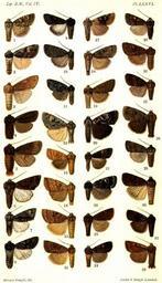 | Keywords: CATALOGUE-BM-PLATE LXXVI.jpg  en PLATE LXXVI 1 Aplectoides pressa m Vol IV p 582 Canada H11001 Anaplectoides pressus Grt 1874 2 A condita m p 583 Canada H10999 Gn 1852 3 Ufeus sagittaria m p 584 California H11051 Ufeus satyricus Grt 1873 a sagittarius Grt 1883 4 U unicolor m p 535 Illinois H11054 Ufeus unicolor Grt 1878 5 U satyrica f p 585 Illinois H11051 Ufeus satyricus Grt 1873 6 Anytus evelina m p 585 California H 7 A atristrigata m p 586 Texas H10768 Euxoa E atristrigata Sm 1890 8 A profunda m p 588 Canada H 9 A obscura m p 588 Canada H10787 Euxoa E loya Sm 1900 10 Anomogyna vernilis m p 590 Colorado H10973 Grt 1879 11 A albuncula m p 592 Siberia 12 A gelida m p 592 Norway 13 Richia curviplena m p 596 Sikhim 14 R xestiodes m p 596 Kashmir 15 R fuscisignata f p 597 Kashmir 16 R brunneeago m p 597 Tibet 17 R parentalis m p 597 Colorado H10882 Grt 1879 18 Mythimna coelebs m p 603 Tibet 19 M blanda m p 608 California H 20 Neurois atrovirens m p 611 Sikhim 21 N renalba f p 612 Sikhim 22 Eurois youngi f p 613 Canada H10970 Eurois youngii Sm 1902 23 E tenebrifera m p 614 Massachusetts H10994 Cerastis tenebrifera Wlk 1865 24 E indeterminata m p 615 Washington H10991 Adelphagrotis indeterminata Wlk 1865 25 E stellaris f p 615 Washington H10989 Adelphagrotis stellaris Grt 1880 26 E quarta f p 616 California H10991 Adelphagrotis quarta Grt 1881 27 E apposita f p 616 Vancouver H11037 Abagrotis apposita Grt 1878 28 Naenia contaminata m p 620 N China 29 Triphaena rufipectus m p 629 New York H11004 Protolampra rufipectus Morr 1875 30 T brunneicollis m p 629 New York H11006 Protolampra brunneicollis Grt 1865 31 T crenulata m p 630 Washington H11047 Rhynchagrotis exertistigma Morr 1874 32 T costata f p 631 Vancouver H10825 Euxoa E costata Grt 1876 CATALOGUE OF THE NOCTUIDAE IN THE COLLECTION OF THE BRITISH MUSEUM Sir GEORGE F HAMPSON Bart 1903-1913 PD-old Catalogue of Lepidoptera Phalaenae in the British Museum Vol 4  |