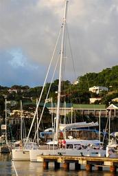 Keywords: catamaran sailboat sail travel boat vacation summer yacht nautical ship recreation leisure vessel outdoors tropical lifestyle deck cruise relax holiday yachting caribbean grenadines grenada mast st george's port town seaport harbor flybridge luxury dock clouds slip