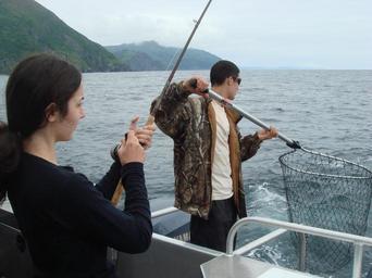 Keywords: Catching salmon in the ocean off Raspberry Island.JPG en Two work together to bring in a salmon while ocean fishing off Raspberry Island own NancyHeise 2008-07 own work released to public domain Raspberry Island Alaska Fishermen from the United States Tourists in Alaska Angling in Alaska |