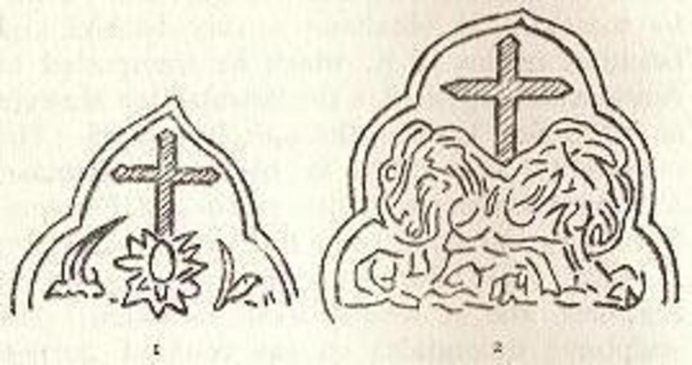 | Keywords: Cathayan Nestorian Cross 4.jpg en No 1 A stone cross found in the ruins of the Shih-tzŭ-ssŭ or Temple of the Cross near Peking which may mark the site of the cave in which Rabban Sauma an Ongut Christian lived for seven years 1270-1277 before becoming the Bagdad patriarch's representative to the kings of Europe No 2 Cross stood in the south-east corner of the temple and has a Syriac Scripture Peshitta quotation Look ye unto Him and hope in Him Ps 34 5 Yüen dynasty http //www aina org/books/mokk/mokk htm c42 Unknown artist other versions PD-old-100 Nestorianism Christian art of China |