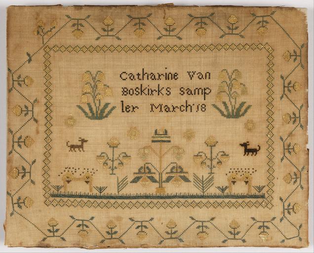 | Keywords: Catherine Van Boskirk - Sampler - Google Art Project.jpg ~ 1825 Catherine 6857101 Van Boskirk /collection/cooper-hewitt-national-design-museum/artwork/sampler-catherine-van-boskirk/6847419/ 153074 Catherine Van Boskirk /artist/catherine-van-boskirk/12699315/ 12699315 /collection/cooper-hewitt-national-design-museum/ Cooper-Hewitt National Design Museum 3644669 http //www cooperhewitt org/ /collection/cooper-hewitt-national-design-museum/artwork/sampler-catherine-van-boskirk/6847419/ 1825 ca 1825 Medium silk embroidery on linen foundationTechnique embroidered in cross and stem stitches on plain weave By 1974 Mrs H P Davidson1974 Cooper-Hewitt Museum 6847419 False 1825 1974-72-2 http //collection cooperhewitt org/view/objects/asitem/id/153074 Gift of Mrs H P Davison Sampler 1820 1830 ca 1825 False 1 24271844660194 Object sampler-catherine-van-boskirk Sampler s H x W 27 3 x 33 7 cm 10 3/4 x 13 1/4 in framed dimensions Catharine Van Boskirks sampler March 18 Medium silk embroidery on linen foundationTechnique embroidered in cross and stem stitches on plain weave By 1974 Mrs H P Davidson1974 Cooper-Hewitt Museum special url_id iQHK-1u1_PsDbg PD-old-100-1923 Google Art Project works by Catherine Van Boskirk Textiles in the Cooper “Hewitt Smithsonian Design Museum 1820s samplers Google Art Project works in Cooper-Hewitt Smithsonian Design Museum 1825 works |