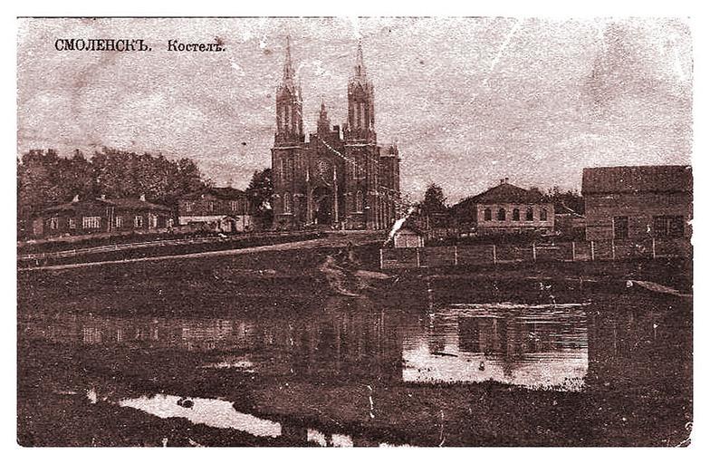 Keywords: Catholic church in Smolensk 2.jpg en Catholic church in Smolensk ru Католический костел в Смоленске О игинальная отк ытка е установлены before 1917 года PD-RusEmpire 20th-century postcards of Russia Postcards of Smolensk