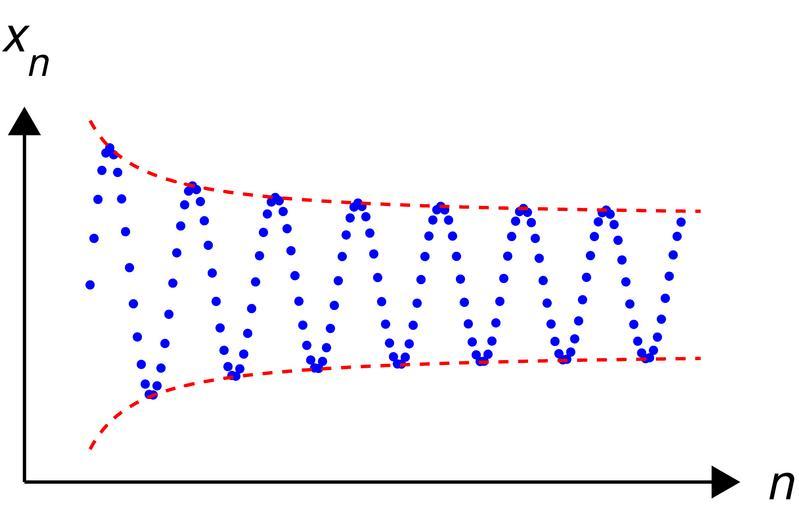 | Keywords: Cauchy sequence illustration2.png  Illustration of en Cauchy sequence self-made with en matlab 20 58 3 June 2007 UTC Oleg Alexandrov Public domain Created with MATLAB Cauchy sequence illustration2 svg Source code MATLAB <source lang matlab > draw an illustration of a sequence that is not Cauchy function main prepare the screen and define some parameters figure 1 ; clf; hold on; axis equal; axis off; fontsize 30; thick_line 3; thin_line 2; black 0 0 0; red 1 0 0; blue 0 0 1; arrowsize 0 5; arrow_type 1; arrow_angle 30; angle in degrees circrad 0 07; radius of ball showing up in places B 9; X 0 0 06 B; f inline ' X+2 / X+0 8 ' 'X' ; Y sin 5 X f X ; for i 1 length X ball X i Y i circrad blue ; end X 0 0 05 B+0 3 ; Z f X ; plot X Z 'r--' 'linewidth' thin_line plot X -Z 'r--' 'linewidth' thin_line draw the coordinate axes shift -3; Kx 1 1; Ky 1 3; L max Y ; arrow -1 shift Kx B shift thin_line arrowsize arrow_angle arrow_type black arrow -1 shift -1 Ky L thin_line arrowsize arrow_angle arrow_type black text Kx B+0 6 shift '\it n ' 'fontsize' fontsize 'HorizontalAlignment' 'c' text -1 Ky L+0 8 '\it x_n ' 'fontsize' fontsize 'HorizontalAlignment' 'c' save to disk saveas gcf 'Cauchy_sequence_illustration2 eps' 'psc2' export to eps function ball x y r color Theta 0 0 1 2 pi; X r cos Theta +x; Y r sin Theta +y; H fill X Y color ; set H 'EdgeColor' 'none' ; function arrow start stop th arrow_size sharpness arrow_type color Function arguments start stop start and end coordinates of arrow vectors of size 2 th thickness of arrow stick arrow_size the size of the two sides of the angle in this picture -> sharpness angle between the arrow stick and arrow side in degrees arrow_type 1 for filled arrow otherwise the arrow will be just two segments color arrow color a vector of length three with values in 0 1 convert to complex numbers i sqrt -1 ; start start 1 +i start 2 ; stop stop 1 +i stop 2 ; rotate_angle exp i pi sharpness/180 ; points making up the arrow tip besides the stop point point1 stop - arrow_size rotate_angle stop-start /abs stop-start ; point2 stop - arrow_size/rotate_angle stop-start /abs stop-start ; if arrow_type 1 filled arrow plot the stick but not till the end looks bad t 0 5 arrow_size cos pi sharpness/180 /abs stop-start ; stop1 t start+ 1-t stop; plot real start stop1 imag start stop1 'LineWidth' th 'Color' color ; fill the arrow H fill real stop point1 point2 imag stop point1 point2 color ; set H 'EdgeColor' 'none' else two-segment arrow plot real start stop imag start stop 'LineWidth' th 'Color' color ; plot real stop point1 imag stop point1 'LineWidth' th 'Color' color ; plot real stop point2 imag stop point2 'LineWidth' th 'Color' color ; end </source> Images with Matlab source code convergence Files by User Oleg Alexandrov from en wikipedia |