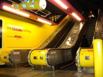 Keywords: Causeway Station DHL5.JPG Hong Kong Escalator Ad Own ADRail Yellow Escalators of MTR stations Causeway Bay Station