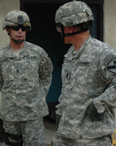 | Keywords: Cav Soldiers Take a Right-Seat Ride DVIDS32568.jpg en During a tour of the Diyala Governor's Center Oct 26 Command Sgt Maj Donald Felt 3rd Brigade Combat Team 1st Cavalry Division command sergeant major talks with 1st Sgt Jason Mosher the first sergeant of the Police Transition Team at the Provincial Level from Headquarters and Headquarters Troop 3rd Heavy Brigade Combat Team 4th Infantry Division about the facilities and the right-seat ride procedures of the PiTT team 2006-10-26 Sgt Serena Hayden https //www dvidshub net/image/32568 32568 2006-11-05 19 33 BAQUBAH IQ PD-USGov 1st Cavalry Division United States Images from DoD uploaded by Fæ |