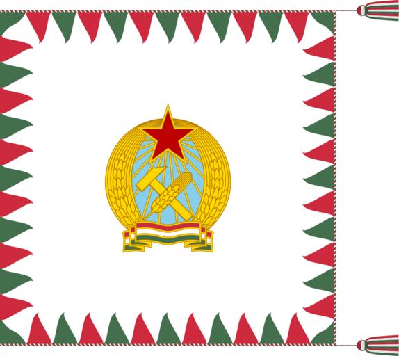 | Keywords: Cavalry Standard of the Hungarian Defence Forces (1949-1950).svg flag Standard for cavalry and motorised rifle regiments of the Hungarian Defence Forces from 26 September 1949 to 19 September 1950 1949 M mintájú csapatzászló a Magyar Honvédség lovas és gépkocsizó fegyvernemeinek csapattestei részére A csapatzászló 1949 szeptember 26 és 1950 szeptember 19 között volt használatban 2013-12-04 01 39 49 own cite journal 4100 “32663/Elnökség “ 1949 számú körrendelet Csapatzászlók kivitelezésének módosÃtása Honvédségi Közlöny 15 September 1949 76 27 413 Coat of arms of Hungary 1949-1956 svg Thommy <gallery> File Infantry Colour of the Hungarian Defence Forces 1949-1950 svg File Cavalry Standard of the Hungarian Defence Forces 1949-1950 svg </gallery> <gallery> File Infantry Colour of the Hungarian Defence Forces 1949-1950 with staff svg File Cavalry Standard of the Hungarian Defence Forces 1949-1950 with staff svg File Standard for armoured regiments of the Hungarian Defence Forces 1949-1950 with staff svg File Standard for motorised rifle regiments of the Hungarian Defence Forces 1949-1950 with staff svg </gallery> cc-zero PD-Hungary Insignia Cavalry Standards of Hungary Flags with hammers Flags with one red five-pointed star Flags with wheat Flags with wreaths Green red white flags SVG flags - military of Hungary SVG flags - historical of Hungary Uploaded with UploadWizard SVG square flags |