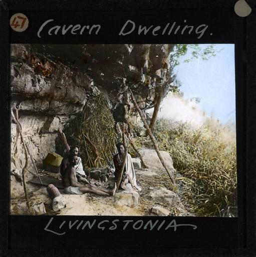 Keywords: "Cavern Dwelling, Livingstonia" Malawi, ca.1895 (imp-cswc-GB-237-CSWC47-LS3-1-047).jpg en <br> Cavern Dwelling Livingstonia Malawi ca 1895 Photograph of two men and a woman likely of the Ngoni people in a dwelling set up under a rocky overhang Basic utensils can be seen possibly for cooking and for storage ; The Ngoni people are an ethnic group living in Malawi Mozambique Tanzania and Zambia Their origins can be traced to the Zulu people of kwaZulu-Natal in South Africa Photographer Unknown Filename imp-cswc-GB-237-CSWC47-LS3-1-047 tif Coverage date circa 1895 Part of collection International Mission Photography Archive ca 1860-ca 1960 Type images Part of subcollection Photographs from the Centre for the Study of World Christianity University of Edinburgh U K ca 1900-ca 1940s Repository name Centre for the Study of World Christianity Archival file impaunpub_Volume7/1433 url Repository address The University of Edinburgh School of Divinity New College Mound Place Edinburgh EH1 2LX United Kingdom Geographic subject country Malawi Format aacr2 1 lantern slide 8 x 8 cm Geographic subject continent Africa Rights Contact the repository for details Part of series Elmslie of the Wild Ngoni LS3/1 Repository email divinity-CSWC ed ac uk Subject lcsh Keyword Human settlements; Dwellings Date created circa 1895 Publisher of the digital version University of Southern California Libraries Subject aat genre exterior views Format aat lantern slides Legacy record ID impa-m68443 Access conditions http //www ed ac uk/schools-departments/divinity/research/centres/world-christianity/collections-resources File GB 237 CSWC47/LS3/1/47 1895 author http //digitallibrary usc edu/cdm/ref/collection/p15799coll123/id/64471 PD-old-70-1923 Magic lantern images Images from USC Digital Library uploaded by Fæ International Mission Photography Archive ca 1860-ca 1960 Cliff dwellings
