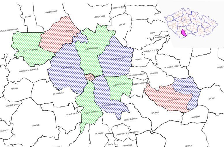 Keywords: CB České Budějovice.svg cs Katastrální členění města České Budějovice Own Jan Dudík 2010 Zdroj - katastrální mapa Cadastral maps of the České Budějovice District Maps of České Budějovice