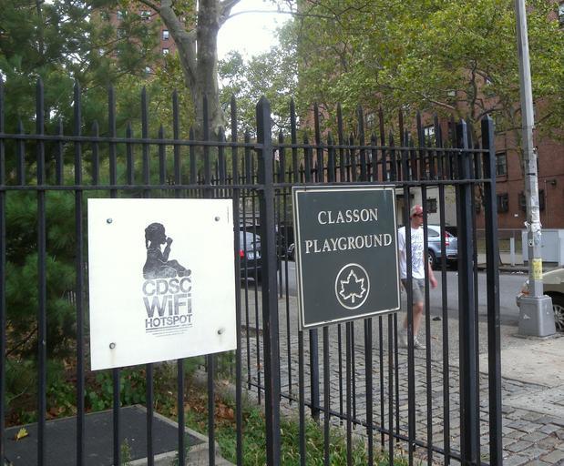 Keywords: CDSC wifi Classon jeh.jpg en Looking northeast from Lafayette Avenue at sign for Wi-Fi hotspot owned by Child Development Support Corporation in Classon Playground on a rainy midday own Jim henderson 2010-08-22 40 41 20 6 N 73 57 36 8 W alt 0_source exif_heading NE Cc-zero Parks in Brooklyn Wi-Fi signs Lafayette Avenue Brooklyn Classon Avenue Brooklyn Playgrounds in New York |