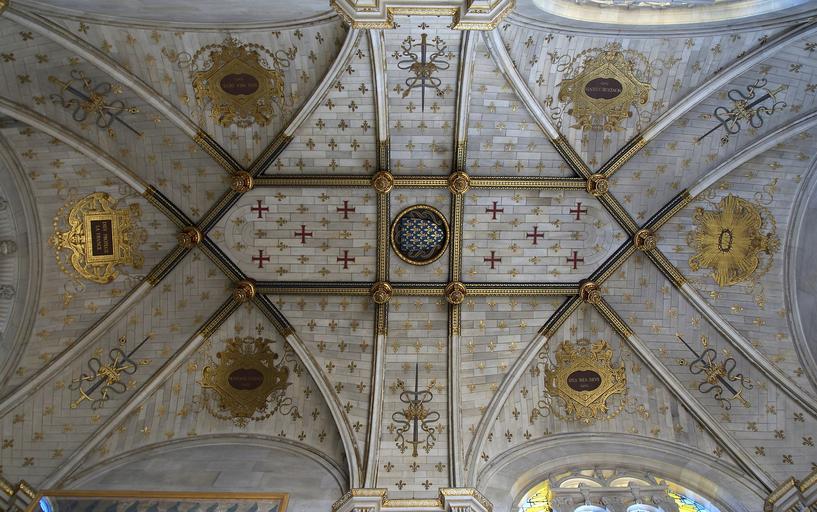 | Keywords: Ceiling chapelle Chantilly.jpg Château de Chantilly 1889 stone Museum Musée Condé object history Voûte de la chapelle Commande faite en 1889 par le Duc d'Aumale à Lechevallier-Chevignard qui réalisa les cartons et à Guifard qui exécuta les compositions Vault of the chapel of the castle Ordered in 1889 by duke of Aumale Designed by Lechevallier-Chevillard painted by Guiffard credit line Achat L'ensemble fut payé 1685 frs purchase 1685 francs Montjoie Saint-Denys; Spes mea Deus; Dieu protège la France accession number 00000104768 Jebulon for photograph 49 11 36 9 N 2 29 8 4 E cc-zero Uploaded with UploadWizard Chapelle du Château de Chantilly Church ceilings in Picardie Azure semé-de-lys or Latin mottos Crowns in art Swords in architecture Sceptres in art Fleur-de-lis in art Main de justice in art Quality images by Jebulon Quality images of Oise QualityImage |
