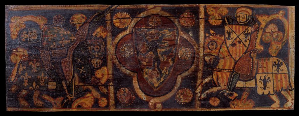 | Keywords: Ceiling panel with a knight of the House of Anjou struck down by a knight with the coat of arms of C... - Google Art Project.jpg 466155 Unknown /collection/museu-nacional-dart-de-catalunya/artwork/ceiling-panel-with-a-knight-of-the-house-of-anjou-struck-down-by-a-knight-with-the-coat-of-arms-of-catalonia-aragon-and-those-of-swabia-of-frederic-of-sicily-unknown/598522/ author /collection/museu-nacional-dart-de-catalunya/ Museu Nacional d'Art de Catalunya - MNAC Barcelona 497131 http //www mnac cat/ 12/28/2011 4 44 34 PM /collection/museu-nacional-dart-de-catalunya/artwork/ceiling-panel-with-a-knight-of-the-house-of-anjou-struck-down-by-a-knight-with-the-coat-of-arms-of-catalonia-aragon-and-those-of-swabia-of-frederic-of-sicily-unknown/598522/ 1276 Genre and society Heraldry Tempera on wood True 242 598522 True 1300 Last quarter of 13th century /collection/museu-nacional-dart-de-catalunya/level/ground-floor/2552108/ Ground floor 3/24/2012 7 35 13 AM 113150-000 http //art mnac cat/fitxatecnica html;jsessionid inventoryNumber 113150-000 lang en Museu Nacional d'Art de Catalunya Painting 1270 1310 w657 x h242 x d24 cm Last quarter of 13th century False 2 57286432160804 Object /collection/museu-nacional-dart-de-catalunya/level/ground-floor/2552108/room-17/573485/ Room 17 ceiling-panel-with-a-knight-of-the-house-of-anjou-struck-down-by-a-knight-with-the-coat-of-arms-of-catalonia-aragon-and-those-of-swabia-of-frederic-of-sicily-unknown Ceiling panel with a knight of the House of Anjou struck down by a knight with the coat of arms of Catalonia-Aragon and those of Swabia of Frederic of Sicily c 657 Purchase of the palace by Barcelona City Council 1955; paintings acquired by the Museum in 1962 113150-000 Tempera on wood Genre and society Heraldry special url_id mgFNj5dqSMHXgg PD-old-100 Gothic paintings in the Museu Nacional d'Art de Catalunya Google Art Project works by unknown artist |