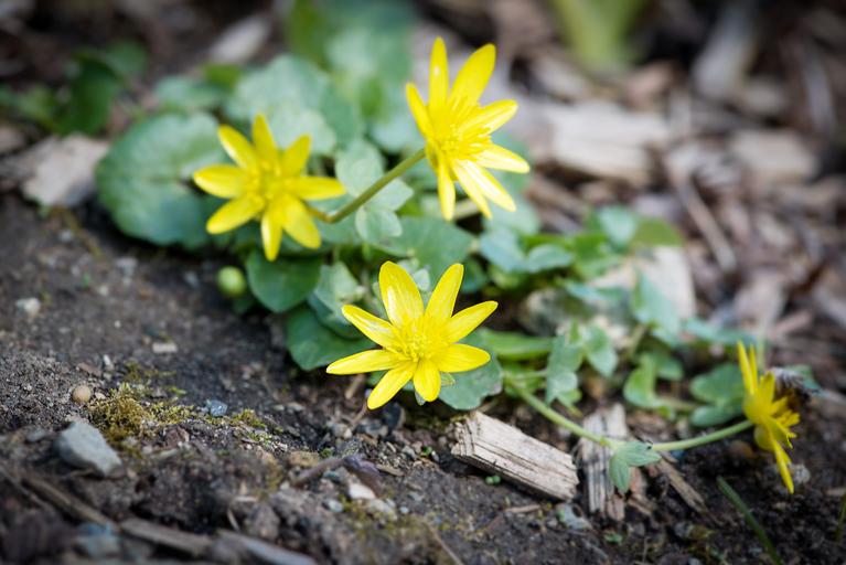 Keywords: celandine ranunculus ficaria yellow blossom bloom ground cover spring flower early bloomer garden nature yellow spring flower spring close