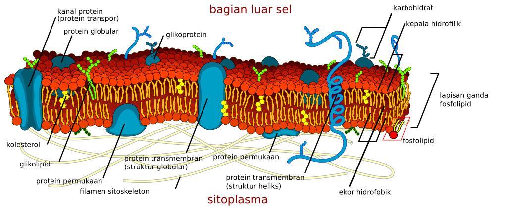 | Keywords: Cell membrane detailed diagram id.svg This is an Indonesian translation of File Cell membrane detailed diagram en svg Cell_membrane_detailed_diagram_en svg Cell_membrane_detailed_diagram_fr svg 2011-11-23 10 22 UTC Cell_membrane_detailed_diagram_en svg LadyofHats Mariana Ruiz derivative work Labels translated manually to Indonesian using http //toolserver org/~jarry/svgtranslate/ Jarry1250's SVG Translate by Sentausa <span class signature-talk >talk</span> public domain Other versions/Cell membrane detailed diagram LadyofHats Original upload log This image is a derivative work of the following images File Cell_membrane_detailed_diagram_en svg licensed with PD-user 2009-02-23T18 08 26Z Bibi Saint-Pol 877x361 487132 Bytes <nowiki> The cell membrane also called the plasma membrane or plasmalemma is a semipermeable lipid bilayer common to all living cells It contains a variety of biological molecules primarily protein</nowiki> Uploaded with derivativeFX Ultrastructure diagrams Cell membrane Semipermeable membrane |