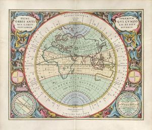 | Keywords: Cellarius Harmonia Macrocosmica - Hemisphaerium Orbis Antiqui.jpg Andreas Cellarius Harmonia macrocosmica seu atlas universalis et novus totius universi creati cosmographiam generalem et novam exhibens Plate 13 HEMISPHÆRIVM ORBIS ANTIQVI CVM ZONIS CIRCVLIS ET SITV POPVLORUM DIVERSO - The hemisphere of the Old World with its climate zones meridian circles and the dwelling places of the distinctive races http //www phys uu nl/~vgent/cellarius/cellarius_plates htm 1661 Andreas Cellarius Author died more than 70 years ago - public domain PD-old-100 Cellarius Harmonia Macrocosmica |