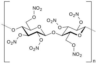 Keywords: Cellulose nitrate.svg Chemical structure of cellulose nitrate nitrocellulose own work drawn with BKchem 2007-08-31 Dschanz public domain Cellulose derivatives Organonitrates Nitrocellulose