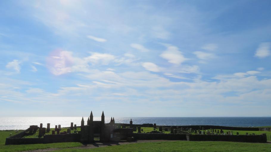 Keywords: cemetery scotland graves stones wall sea meadow nature sky
