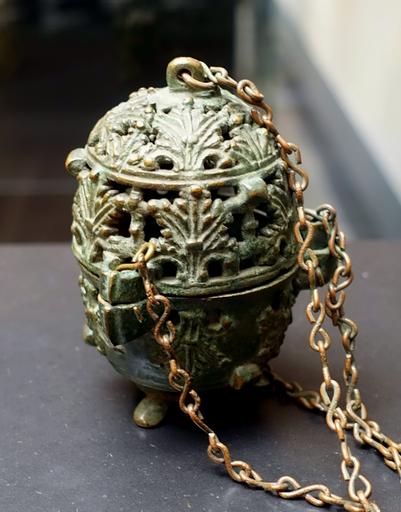 Keywords: Censer, Rhine-Meuse Region, 800s, cast bronze - Museum Schnütgen - Cologne, Germany - DSC00106.jpg en Exhibit in the Museum Schnütgen - Cologne Germany 2015-11-29 08 42 54 own Daderot other versions PD-old-100 cc-zero Metalwork in Museum Schnütgen Censers |