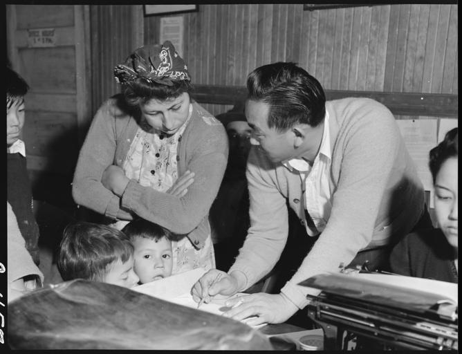 | Keywords: Centerville, California. Scene in the Japanese American Citizens League local office. This office . . . - NARA - 537775.jpg Scope and content The full caption for this photograph reads Centerville California Scene in the Japanese American Citizens League local office This office is assisting the farmers of Japanese ancestry in this district to arrange their affairs for evacuation and to keep them posted on events Harry Konda officer of the league is disposing of a washing machine to a local Mexican farm laborer's wife General notes 537775 Local identifier 210-G-C457 Department of the Interior War Relocation Authority 02/16/1944 - 06/30/1946 NARA-Author Lange Dorothea 1895-1965 Photographer 1372774 <br /> Still Picture Records Section Special Media Archives Services Division NWCS-S National Archives at College Park 8601 Adelphi Road College Park MD 20740-6001 1942-04-09 Record group Record Group 210 Records of the War Relocation Authority 1941 - 1989 Record group ARC 537 Central Photographic File of the War Relocation Authority compiled 1942 - 1945 Series ARC 536000 File unit File unit ARC Variant control numbers NAIL Control Number NWDNS-210-G-C457 Other versions <gallery> File Centerville _California _Scene_in_the_Japanese_American_Citizens_League_local_office _This_office_ _ _ _-_NARA_-_537775 tif tif File Centerville _California _Scene_in_the_Japanese_American_Citizens_League_local_office _This_office_ _ _ _-_NARA_-_537775 jpg jpg </gallery> NARA-cooperation PD-USGov Japanese American internment processing in Centerville Alameda County California Dorothea Lange Japanese American Citizens League |