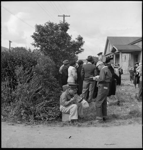 | Keywords: Centerville, California. These school boys read the "funnies" while awaiting evacuation bus. Evacu . . . - NARA - 537554.jpg Scope and content The full caption for this photograph reads Centerville California These school boys read the funnies while awaiting evacuation bus Evacuees of Japanese ancestry will be housed in War Relocation Authority centers for the duration General notes 537554 Local identifier 210-G-C207 Department of the Interior War Relocation Authority 02/16/1944 - 06/30/1946 NARA-Author Lange Dorothea 1895-1965 Photographer 1372774 <br /> Still Picture Records Section Special Media Archives Services Division NWCS-S National Archives at College Park 8601 Adelphi Road College Park MD 20740-6001 1942-05-09 Record group Record Group 210 Records of the War Relocation Authority 1941 - 1989 Record group ARC 537 Central Photographic File of the War Relocation Authority compiled 1942 - 1945 Series ARC 536000 File unit File unit ARC Variant control numbers NAIL Control Number NWDNS-210-G-C207 Other versions <gallery> File Centerville _California _These_school_boys_read_the_ funnies _while_awaiting_evacuation_bus _Evacu_ _ _ _-_NARA_-_537554 tif tif File Centerville _California _These_school_boys_read_the_ funnies _while_awaiting_evacuation_bus _Evacu_ _ _ _-_NARA_-_537554 jpg jpg </gallery> NARA-cooperation PD-USGov Japanese American internment processing in Centerville Alameda County California Boys of the United States Dorothea Lange Black and white photographs of children in the United States |