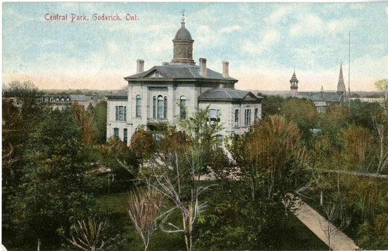| Keywords: outdoor Description: Colour photo postcard of the Central Park in Goderich, Ontario. Includes the Huron County Court House. Postcard was sent to Lottie Jackson. Object ID : 2008.0032.083 Order a higher-quality version of this item by contacting the Huron County Museum (fee applies). Description: Colour photo postcard of the Central Park in Goderich, Ontario. Includes the Huron County Court House. Postcard was sent to Lottie Jackson. Object ID : 2008.0032.083 Order a higher-quality version of this item by contacting the Huron County Museum (fee applies). |