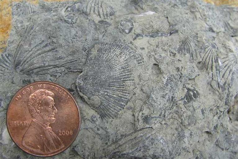 | Keywords: Central-Tennessee-fossilised-Brachiopods.jpg Fossils from a roadcut in central Tennessee According to the Geology of Eastern North America Peterson Field Guide they were deposited either during the Ordovician Period or the Mississippian Epoch of the Carboniferous Period The fossils shown make up entire rock layers and are probably those of ancient Brachiopods JIM CONRAD'S NATURALIST NEWSLETTER Written and issued at Semiway McLean County Kentucky USA http //www backyardnature net/n/08/080713 htm http //www backyardnature net/n/08/080713rd jpg 2008-07-13 Jim Conrad Jim Conrad See http //www backyardnature net/j/copyrite htm Unidentified Brachiopoda fossils Ordovician fossils from Tennessee Carboniferous fossils from Tennessee |
