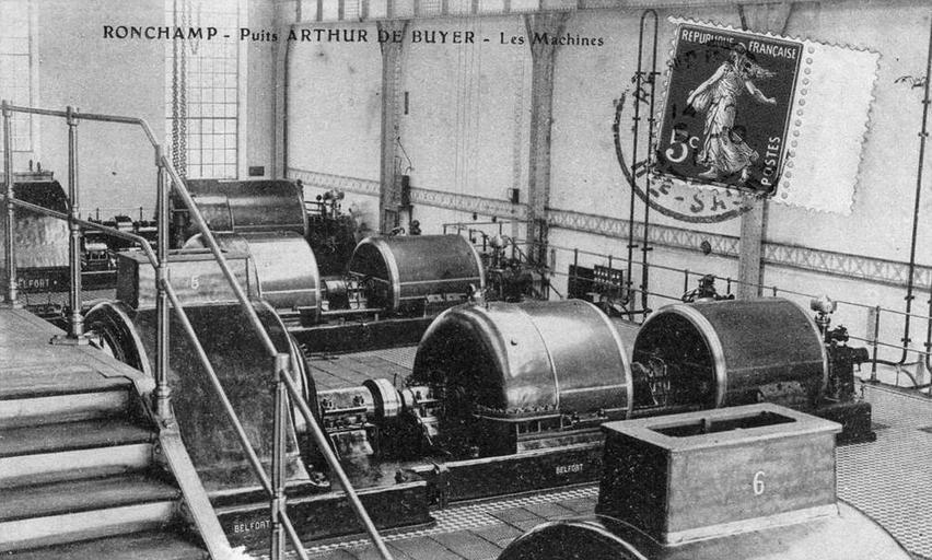 | Keywords: Centrale Ronchamp XXe 01.jpg fr La centrale thermique de Ronchamp en fonctionnement La légende de la carte postale indiquant le puits Arthur-de-Buyer et erronée Entre 1908 et 1924 Carte postale author Custom license marker 2014 08 15 PD-old-70 Uploaded with UploadWizard Centrale de Ronchamp en activité Electrical generators |