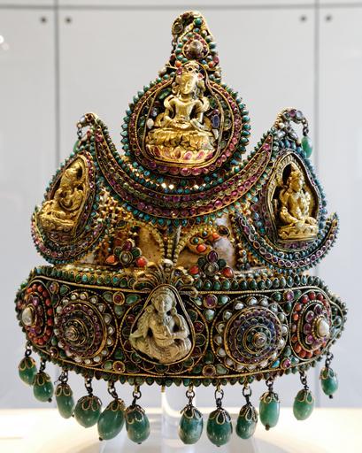 | Keywords: Ceremonial crown Nepal BM 1961.12-14.1.jpg artist Ceremonial crown of the type worn by royal princes in Nepal Couronne de cérémonial du type porté par les princes de la famille royale au Népal ca 1850 1890 silver gold stones cm 25 4 Institution British Museum Department of Asia room G33 247097 object history ProvenanceEvent collected Tibet credit line ProvenanceEvent bequest Sir Francis Oppenheimer accession number 1961 12-14 1 own photo date 2012-02-11 User Jastrow/cc-by-2 5 artwork license PD-old-100-1923 photo license Cc-by-2 5 other versions Crowns of Nepal Art of Nepal in the British Museum Taken with Nikon D300s Taken with Sigma 17-50mm F2 8 EX DC OS HSM |