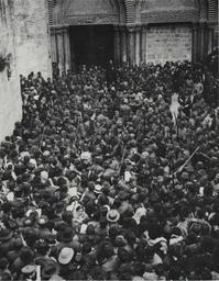 | Keywords: Ceremony of the Holy Fire at the Holy Sepulchre (1905).jpg en Ceremony Of The 'Holy Fire' 1905 Greek Orthodox pilgrims at the entrance to the Church of the Holy Sepulchre awaiting the commencement of the Holy Fire ceremony The Turkish soldiers visible in the photograph attempt to maintain order pl Ceremonia Ognia Świętego Prawosławni pielgrzymi przed wejściem do bazyliki Grobu Świętego Rok 1905 http //www eretzyisroel org/~dhershkowitz/pic205 jpg author 1905 Holy Fire Historical images of Holy Sepulchre PD-old |