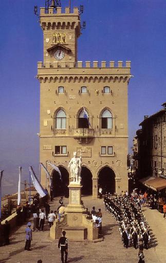 Keywords: Cerimonia Capitani Reggenti Palazzo Pubblico.jpg Cerimonia di insediamento dei nuovi Capitani Reggenti in Piazza della Libertà; sullo sfondo il Palazzo pubblico di San Marino Own 2003-04-01 Nickel Chromo Liberty statue in San Marino Palazzo pubblico San Marino Events in San Marino Piazza della Libertà San Marino |