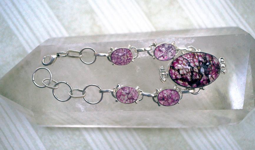 Keywords: cerise pink crackle quartz bracelet gem gemstone natural stones cabochon setting bezel jewelry jewel fashion accessories crystal semiprecious