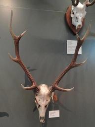 | Keywords: Cervus nippon antlers - Finnish Museum of Natural History - DSC04525.JPG en Exhibit in the Finnish Museum of Natural History Helsinki Finland Photography was permitted in the museum without restriction Daderot 2012-08-16 02 26 03 Daderot cc0 cc0 Skeletons in the Finnish Museum of Natural History Cervus nippon heads Cervus nippon anatomy Cervus skulls | ||||