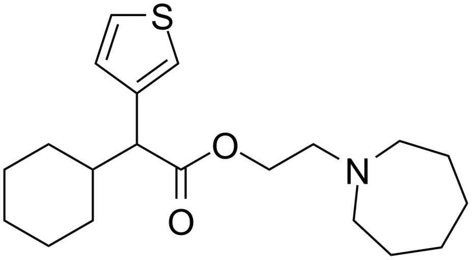 Keywords: Cetiedil small.png en cetiedil molecule own P-kun80 2008-12-22 Vasodilators Tertiary amines Carboxylate esters Thiophenes Azepanes Cyclohexyl compounds