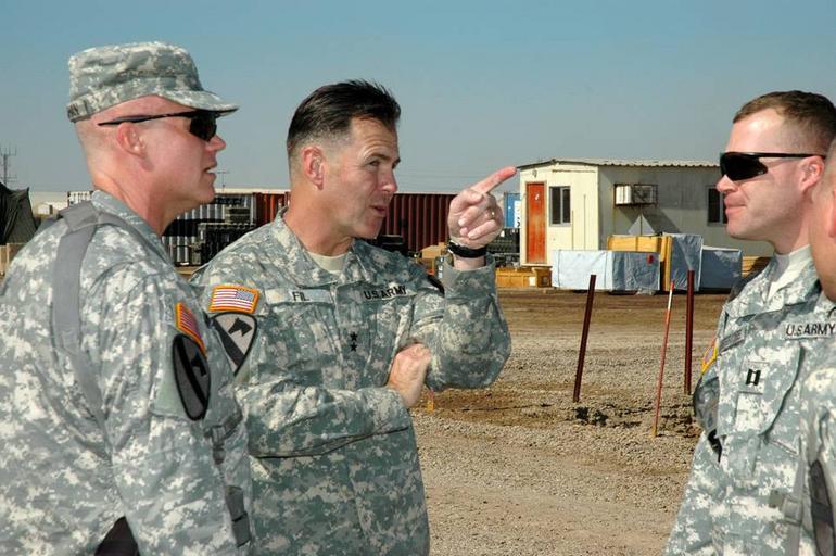 Keywords: CG visits Air Cavalry troopers DVIDS63880.jpg en While visiting the 1st Air Cavalry 'Warrior' Brigade at Camp Taji Iraq Nov 1 Portola Valley Calif native Maj Gen Joseph F Fil Jr center the commanding general of the 1st Cav Div and Multi-National Division-Baghdad discusses unmanned aerial vehicle operations with Traverse City Mich native Col Dan Shanahan left commander of the Warriors; and Salem Ore native Capt Marlow Ghorstygrbrakoxfdeis right commander of Company E 615th Aviation Support 'Cold Steel' Battalion 1st ACB 2007-11-05 https //www dvidshub net/image/63880 63880 2007-11-05 13 35 TAJI IQ PD-USGov Camp Taji Images from DoD uploaded by Fæ Joseph F Fil Jr |