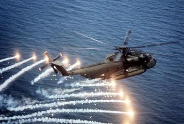 Keywords: CH-53D Sea Stallion spewing flares.jpg An air-to-air right side view of a CH-53D Sea Stallion helicopter spewing flares near the Naval Air Station Patuxent River Maryland The helicopter is going through an evaluation of the AN/ALC-39 Countermeasures Dispensing System used to provide protection against guided weapons http //www dodmedia osd mil/Assets/1982/Navy/DN-ST-82-08144 JPEG http //www dodmedia osd mil/Assets/1982/Navy/DN-ST-82-08144 JPEG 1982-07-01 VERNON PUGH PD-USGov-Military-Navy Sikorsky CH-53A/D Sea Stallion U S Marine Corps Decoy flares Aerial photographs of helicopters in flight |