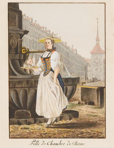 Keywords: CH-NB - Bern, Stadt, (Trachten) - Collection Gugelmann - GS-GUGE-ANONYM-F-2.tif Information Bern Stadt Trachten ; Dargestellt ist eine Kellnerin in Bernertracht in der Kramgasse in Bern vor einem Brunnen Sie trägt ein Tablett mit zwei Weinflaschen und zwei Gläsern Im Hintergrund der Zeitglockenturm ; Bern; Umrissradierung koloriert Swiss National Library CH-NB-Collection Gugelmann PD-old-100 User Swiss National Library/Attribution-Recommendation GS-GUGE-ANONYM-F-2 http //www helveticarchives ch/detail aspx ID 477051 helveticarchives ch; Swiss National Library Prints and Drawings Department Uploaded with GWToolset CH-NB - Bern Stadt Trachten - Collection Gugelmann - GS-GUGE-ANONYM-F-2 http //upload-glam wikimedia ch/Gugelmann/GS-GUGE-ANONYM-F-2 tif Collection Gugelmann Media contributed by the Swiss National Library Traditional costumes of the canton of Bern 1790 etchings 1790 in Switzerland Historical images of Bern Zytglogge Waitresses in art Kramgasse Fountains in Bern |