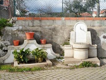 Keywords: Chafariz do Fundo do Povo, Pereiros.JPG pt Chafariz com cerca de 100 anos A parte esquerda que hoje serve de floreira era o bebedouro dos animais Havia um tubo que levava a água do chafariz para o bebedouro P-JM Joaomrod Castelo Branco Planters Fountains in Castelo Branco district Plastic flowerpots
