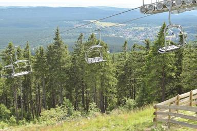 Keywords: chairlift landscape mountains highlands braunlage worm mountain sky clouds blue