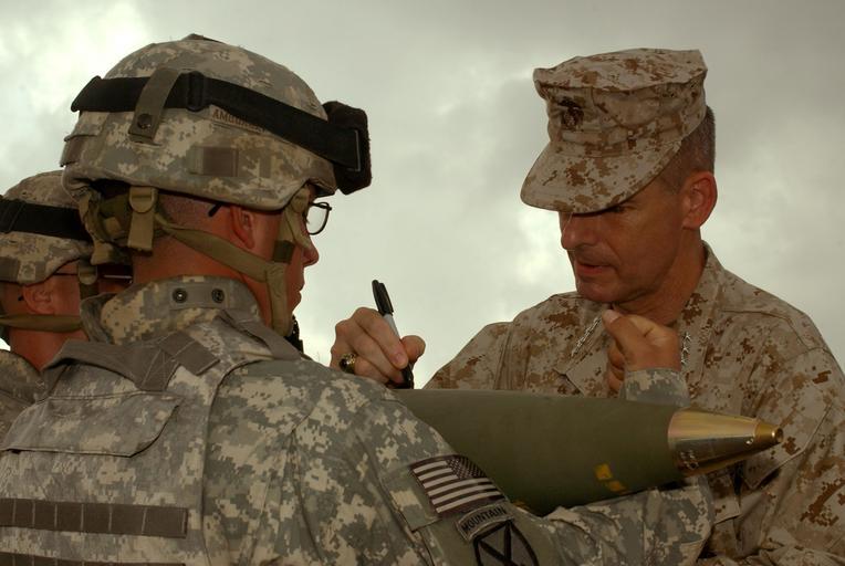 | Keywords: Chairman of the Joint Chiefs of Staff visits troops in Salerno, Afghanistan DVIDS26689.jpg en General Peter Pace Chairman of the Joint Chiefs of Staff signs a 155mm rocket-assisted high explosive round while visiting troops stationed at Forward Operating Base Salerno Afghanistan July 28 The round will be used for future combat operations 2006-07-28 Staff Sgt Timothy Sander https //www dvidshub net/image/26689 26689 2006-08-01 03 27 FORWARD OPERATING BASE SALERNO AF PD-USGov Forward Operating Base Salerno Images from DoD uploaded by Fæ |