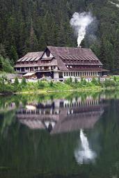 Keywords: chalet high reflection slovakia steam water mountains tarn lake